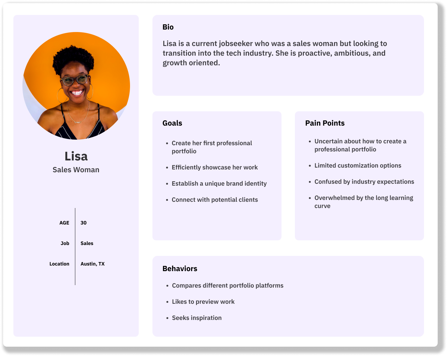 How might we simplify the process and provide enough flexibility for Lisa to create a portfolio?